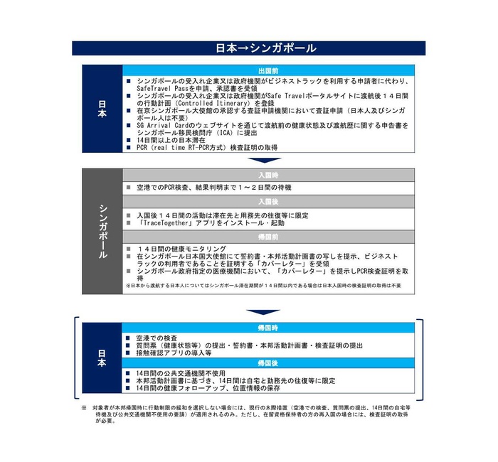 日本外務省 国際的な人の往来再開に向けた段階的措置について(シンガポール・ビジネストラック)