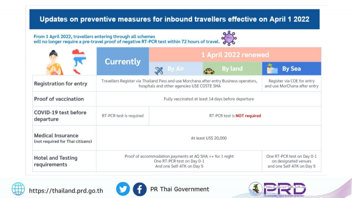 在東京タイ大使館HPに、4月1日からの入国手順がアップデートされましたので、以下の通り要約してご案内申し上げます。