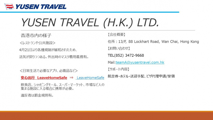 5月9日時点の郵船トラベル 海外4拠点による現地情報をお届け致します。