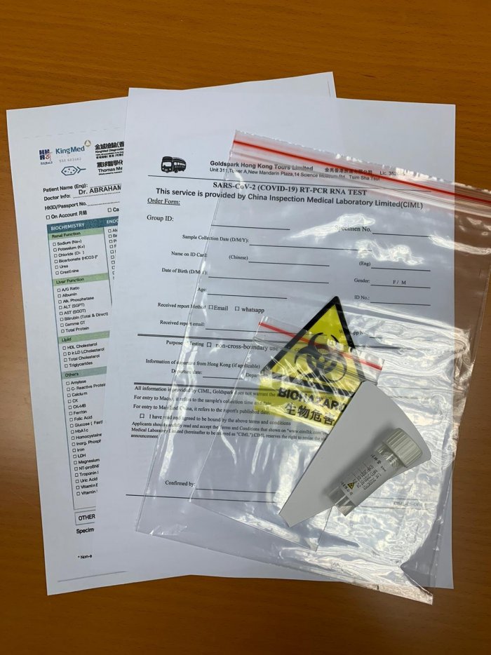 <郵船トラベル香港> PCR陰性証明取得のサポート