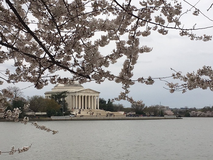 そんな寒い中、ワシントンDCから桜が満開との知らせが届いたので、日帰りでお花見をしてきました。日本と同じ薄いピンク色のソメイヨシノは、やはり美しい。晴れていていたらもっとよかったのですが。