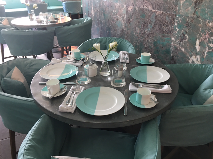 ティファニーブルーに彩られたカフェでの食事を皆様もぜひご体験ください。