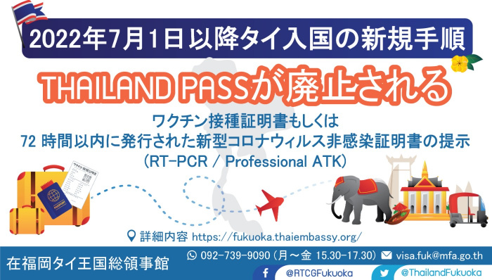 在福岡タイ王国領事館HPに、7月1日からの入国手順がアップデートされました。