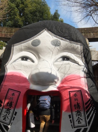 そのうちの1つ、櫛田神社では表門と裏門におたふくの大きなお面が設置され、多くの人で溢れかえりました。