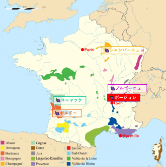 ワインの産地といえばまずはフランスを思い浮かべますよね。もし、ワインにあまり詳しくなくても、ボルドー、ブルゴーニュ、シャンパーニュ、コニャック(ブランデー)などは耳にしたことがあると思います。これらは元来生産地の名称、生産されたワインはEUが制定するAOP法(2008年まではAOC法)によって上級ランクの「AOP(原産地呼称保護ワイン)」、中ランクの「IGP(地理的表示保護ワイン)」、低ランクで特定の産地表示がない「Vin de table」の3カテゴリーに区分されています。