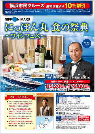 秋の夜長はワイン片手にグルメ三昧、「にっぽん丸 食の祭典 ~ワインフェス~」は誰でも応募できる横浜市民クルーズで登場!10月20日(木)が応募締切です、お急ぎください。