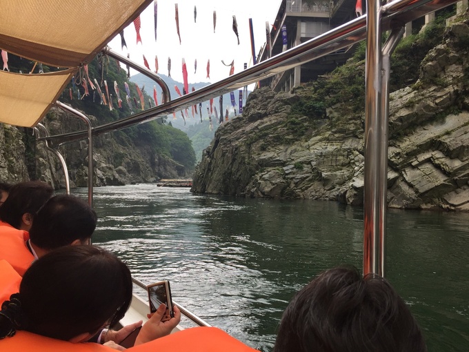 大歩危の地は妖怪が有名であり、特に子泣き爺はどう見ても人間。でも有難いです。船着き場ではこのように妖怪に出迎えていただき、写真撮影まで。人間に慣れ過ぎた妖怪達でした。