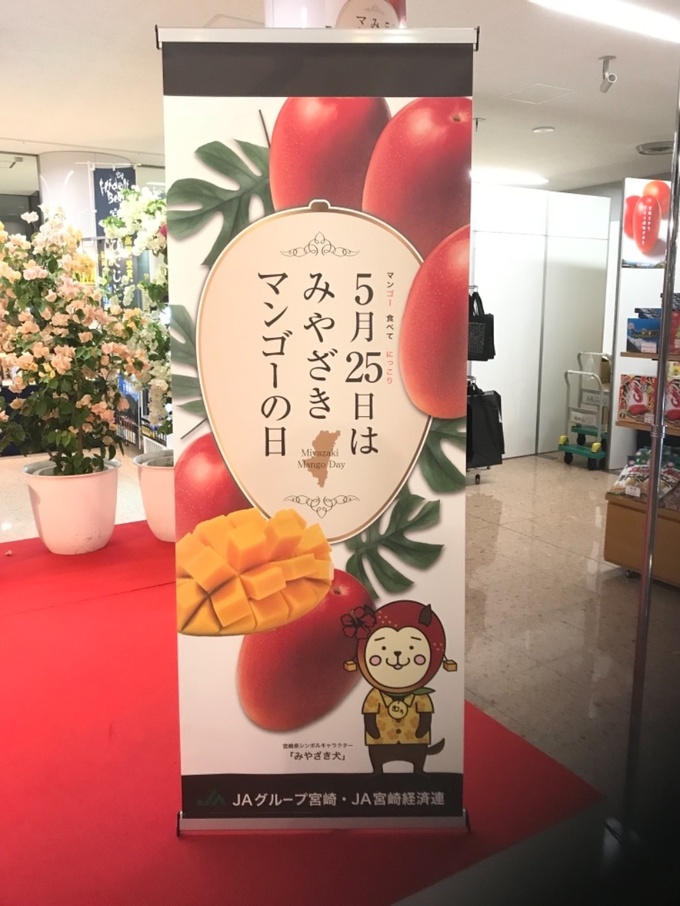 さて、客船で寄港すると宮崎、日向、細島、油津の港となりますが、南国漂う宮崎県には魅力ある観光地が多い訳です。この日は『マンゴーの日』と言うことで、フルーツ好きの小生としては、のマンゴを買いたかったが、1個2千円から2万円の品を眺めるだけに終わってしまいました(買う勇気が足りなかった、弱気だ、、、)。そう考えると、クルーズ乗船中、ブッフェスタイルの食事(朝食、昼食)でデザートにマンゴがあったら、食べ放題と言うことか、、こりゃ、楽しみだわい。