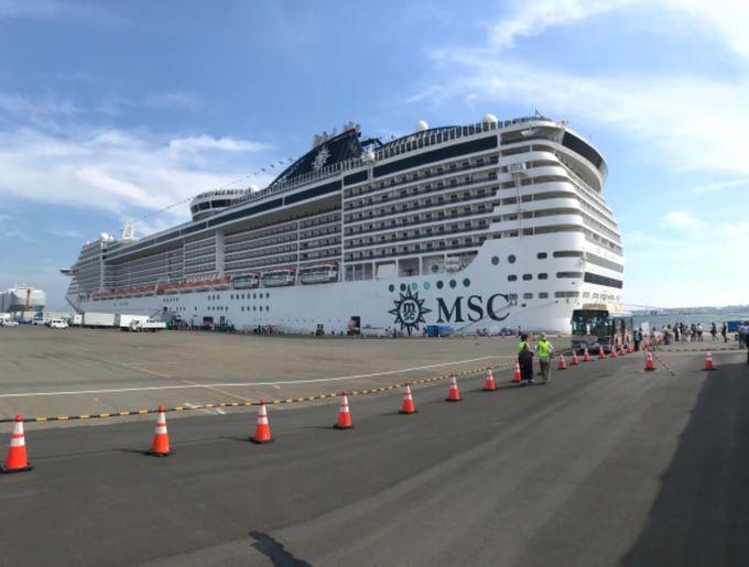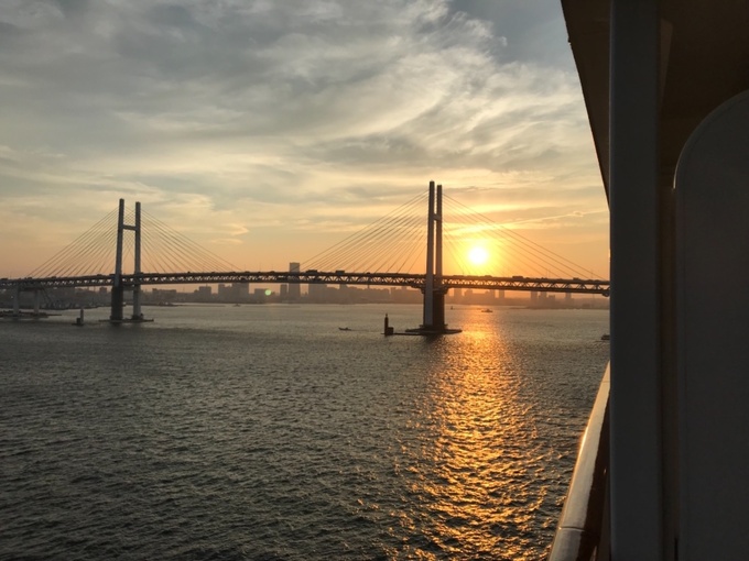 大黒ふ頭で虹を見て〜とサザンオールスターズのノリの良い歌を思い出しながら、昨年から日本発着でお目見えした中国仕様のMSCスプレンディダに乗り込んだ。ネズミだけど、ちゃんと出国手続き(台北寄港)を済ませて舷門からね。明日から船内は1時間時計を遅らせるとか。しかし、外国客船の来航が増え、大黒ふ頭岸壁も変わったものだな。岸壁への移動手段は大桟橋ターミナルから送迎バス又はふ頭駐車場(早い者勝ち)だが、なんと4千人が乗船。ぎょぎょ、夏だけに内、子供が千人!さぁ、みなとみらいを背に23時出港だぜ。追伸: 14時頃、目の前を飛鳥IIが1日遅れで伊東花火クルーズへ出港していました(台風の影響により)。