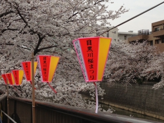 続いて、都内で人気トップ10に入る目黒川の桜まつりをご案内します。東横線を利用して横浜港に近い日本大通り駅へ向かう際、途中の目黒駅にて車内から目に焼き付けていた桜を、今回は初めて下車しての花見でした。都会であり閑静な街中に流れる目黒川に川沿いに咲き誇る桜です。ウォーキングを兼ねた花見に最適ですね。