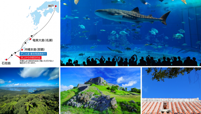 神戸~<航海日>~奄美大島~<伊江島・慶良間諸島航行>~石垣島~沖縄本島(那覇1停泊)~<航海日>~神戸