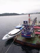 「寄港」とは言っても、神戸や種子島とはちょっと様子が違います。“ぱしふぃっく びいなす”は港に入らず、港の手前で錨泊しています。