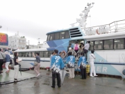 通船に揺られること10分ほどで、天草港に到着。お揃いのはっぴを着た天草の皆さんが出迎えてくださいました。