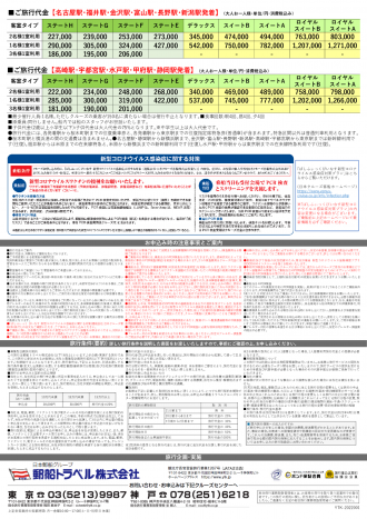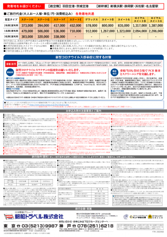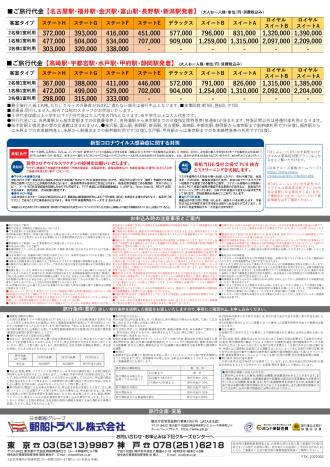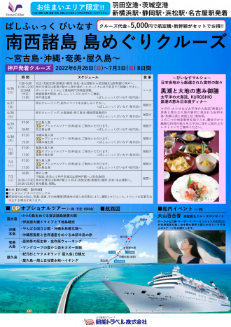 (航空機・新幹線利用とも旅行代金はクルーズ代金に一律5,000円の追加です)
