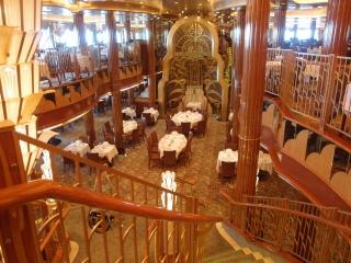2層吹き抜けのメイン・ダイニング「ブリタニア・レストラン」。お食事時間帯は、2回制です。