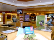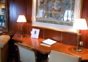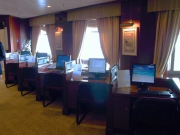 昨日のインターネットカフェに続いて、今日はライブラリー(図書館)とライティングルームをご案内します。落ち着いた木目の調度品がシックです。