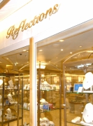 乗船口とレセプションがあった5階の「プラザ・デッキ」から吹き抜けのロビーに配された緩やかなカーブを描く階段を昇り、6階に来ました。吹き抜けを挟んで船内のショップ「Latitudes」と「Reflections」があります。