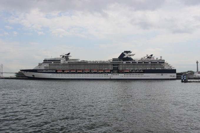 客船ターミナルには実際の乗船客の方が行き来し、14日夕方にはスター・レジェンド、15日夕方にはセレブリティ・ミレニアムの出港シーンも見ることができました。(横浜港では最近、黄色いタオルを振って船を見送るという演出があります。)