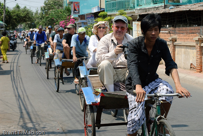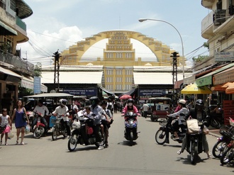 ベトナムのミトーから出港したリバー船はメコン川を遡り、日本出発から数えて5日目にカンボジアの首都、プノンペンに入ります。15世紀前半、衰退したアンコール王都を放棄して、この地に遷都されたのがプノンペンの始まりと言われています。19世紀当時、カンボジアを保護領としていたフランスにより街は整備され「東洋のパリ」とまで呼ばれるようになりました。まずは一人乗りシクロ(輪タク)で街の散策に出かけましょう。