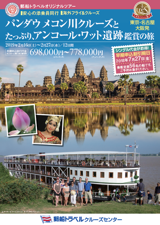 今回ご紹介したカンボジア側のメコン川流域は「パンダウ メコン川とたっぷり、アンコール・ワット遺跡鑑賞の旅」で訪れることができます。欧米人に絶大な人気を誇るパンダウ社の船はお伝えした通り、わずか28室の船ですので大変お部屋の確保が難しく、早期申込割引期日の7月27日(金)を過ぎますと、お部屋の確保が大変難しくなります。