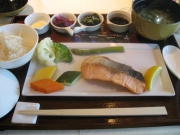 まず右の写真は、日本食の朝食セットです。→