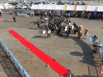 岸壁にはレッドカーペットが敷かれ、歓迎ムードいっぱいの中、接岸です。