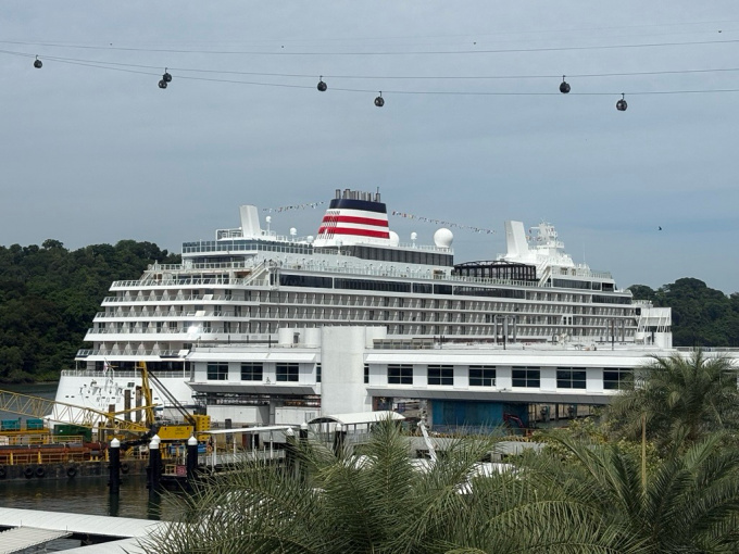 上に写るのはセントーサ島へのケーブルカーです。シンガポールのクルーズセンターに停まっています。