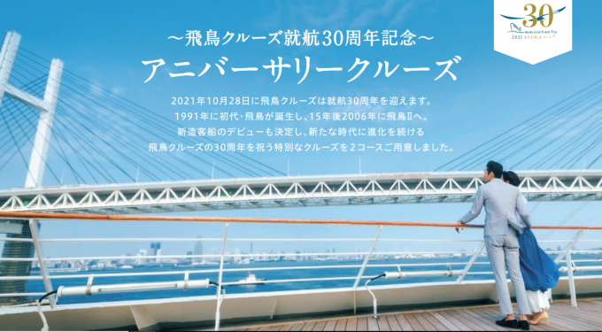 【緊急のお知らせ】10月29日(金)発 飛鳥Ⅱ30周年アニバーサリーウィークエンドクルーズに空きがでました