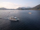 心配されたお天気は、思ったほどは悪くなかったようで、瀬戸内海の島々や大きな橋梁、迫りくる狭い海峡などをお楽しみいただけたのでは、と思います。