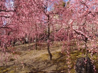 見事な枝垂れ梅の美しい花々をご覧いただけました。