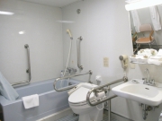 バスルーム内もたっぷりとしたスペースで、バリアフリー対応の設備が一通り揃っています。