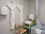 入り口を入るとすぐに、バスルームに通じる大きなスライド式の自動開閉ドアがあります。