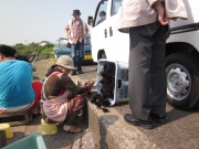 波止場では、水揚げされたウニをできる限り早く、殻を割って身を取り出し加工している風景があちこちで見られます。一つのウニに身は5つ程度しかとれないので根気と慎重さが要求される作業です。高級食材と謂われるのも納得です。