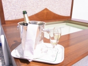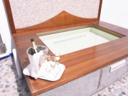 この日は関係者向けの船内お披露目だったのでシャンパンが飾ってありました。