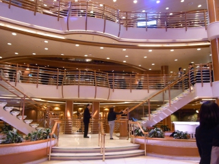 ここはダイヤモンド・プリンセスの中心部。解放感ある吹き抜けのアトリウムです。
