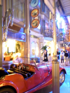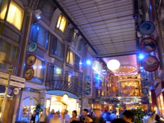 ボリュームたっぷりのディナーを堪能した後は、腹ごなしの船内散歩へ。吹き抜けのプロムナードには、カフェ、アイスクリームショップ、パブ、ブティック、お土産ショップなどが軒を連ね、まるで外国の街みたいです。
