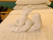 お部屋では、タオルアートの動物がベッドの上で待っていてくれます。この日は耳のピンと立ったウサギ。