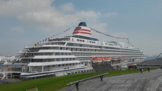2016年のクリスマスクルーズのシーズンも終盤を迎えた飛鳥IIが大さん橋客船ターミナルで船体を休めています。