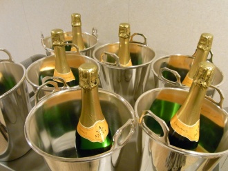 スイートのお部屋に配られるシャンパン。ちょうどメイドさんがお部屋に入れて回っているところでした。クルーズ船のバルコニーからクリスマスの横浜港を眺めつつシャンパンをいただくなんて、素敵です。