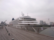 説明会が終了して下船すると、大さん橋客船ターミナルにはキャリーケースを持ったお客様が集まり始めていました。この日夕方5時に出航する【Xmas横浜・神戸ワンナイトクルーズ】のお客様たちです。いってらっしゃい♪