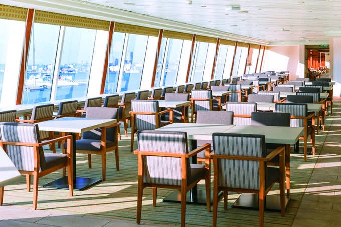 リドデッキ(11階)船尾にあるカフェテリア。洋食の朝食やランチはこちらでいただきます。