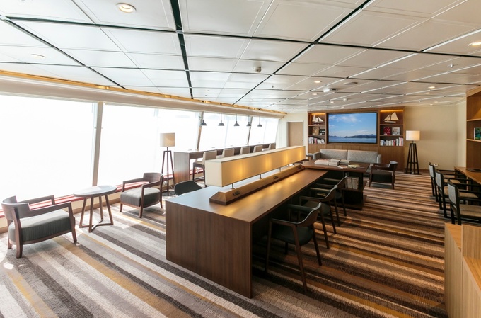 リドデッキ(11階)船首寄り右舷側にありました「コンピュータープラザ」を改装し、コーヒーやハーブティーを飲みながら、インターネット利用や読書が気軽にできるブックラウンジ「イー・スクエア」へと生まれ変わりました!