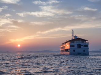ガンツウはどこにも寄港しません。3日間、漂う船にいるのも良いですし、洗練された堀部安嗣氏デザインのテンダーボートに乗って喧騒とはかけ離れた、まだ誰もいない早朝の安芸の宮島に上陸して厳島神社を参拝するも良し、夜は光輝く水島コンビナートの夜景を眺めながら冷えたシャブリを傾けるひとときを楽しむ・・・そんな時間を過ごすことができます。