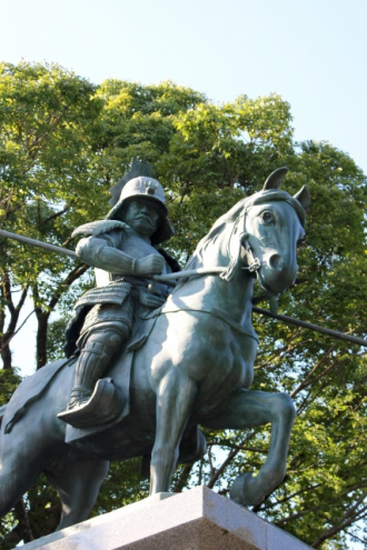 高知を訪れるのなら外せないのが高知城。颯爽と名馬に跨る一豊と名馬を曳く千代の銅像が出迎えてくれます。