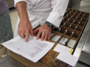 多くのテーブルでのオーダーをどのようにさばいているのか、実は写真のようなオーダーを入れる木箱があり、かなりマニュアルですが、お一人お一人のオーダーを把握しているそうです。