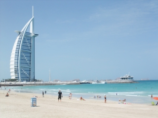 実はこのホテルの目の前は白砂のビーチ。紺碧の海に良く映える、優美な白い帆をイメージした外観を見ていると、ここが中東であることを忘れてしまいそうです。まさに隠れたビーチリゾートです。