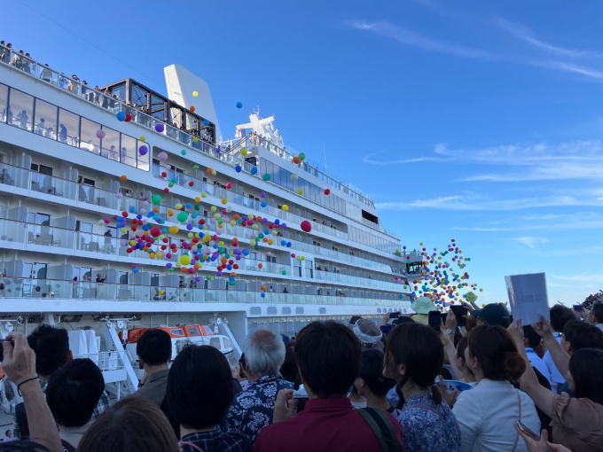 過去に見たことがない多くのお客様に見送られて、横浜からの処女航海に旅立ちました。