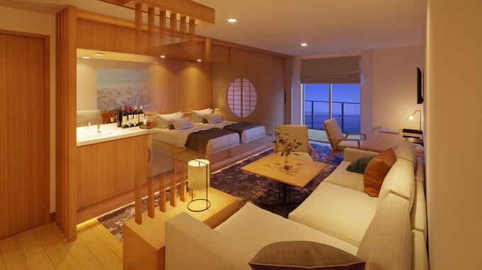 アスカスイートの2室を飛鳥クルーズでは初となる和洋室へ。落ち着いた和の雰囲気と洋室の快適さを兼ね備えたジャパニーズモダンスイートには、ミラーディスプレイテレビやミニシンクを設置します。新しいコンセプトの客室を是非ご体験ください。