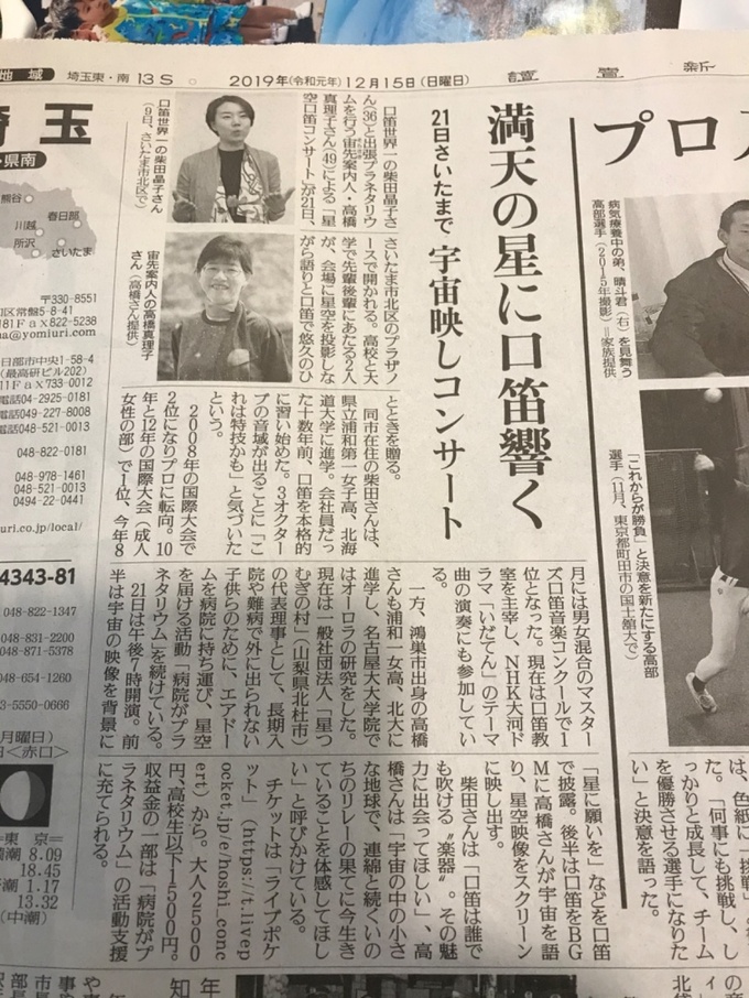 宇宙映しコンサート記事 (口笛奏者 柴田晶子さん)