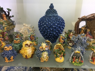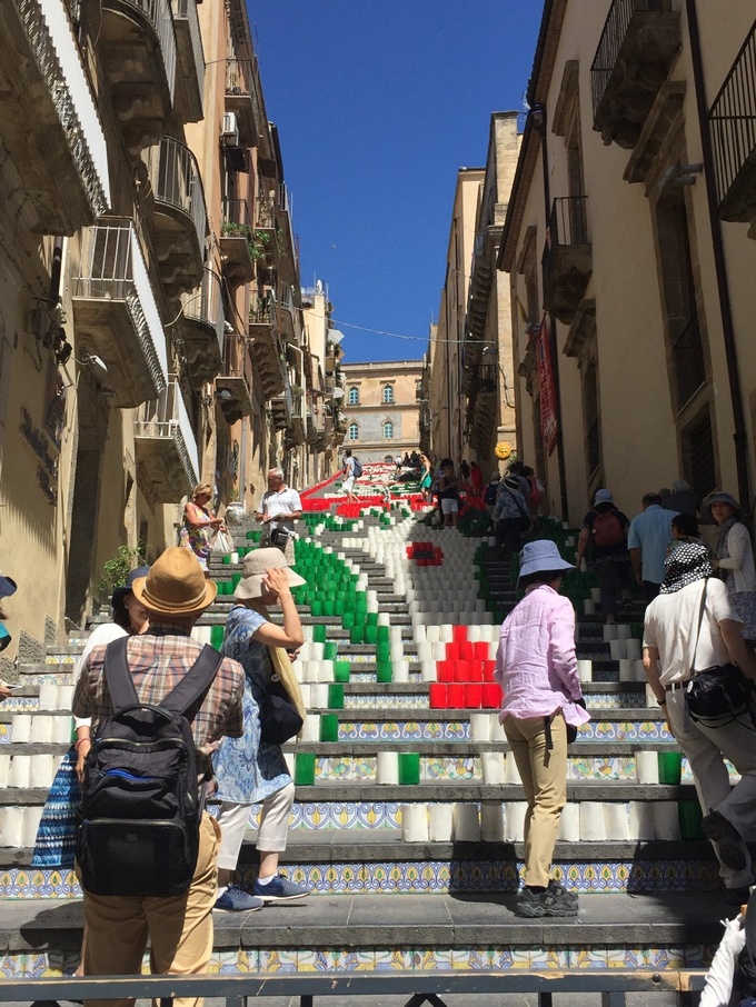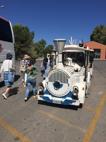 タオルミーナから世界遺産のカルタジローネまでは約115km。到着後、流石に暑い中を市内まで歩くのは酷なので、可愛らしいトレインカーで移動した。